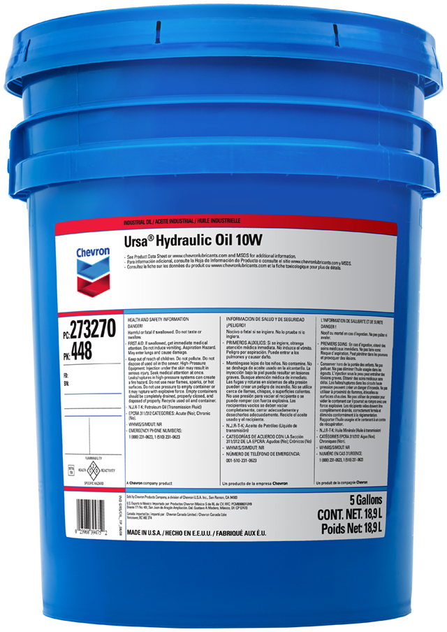 Ursa Hydraulic Oil 10W is a premium hydraulic oil specifically designed to give maximum hydraulic pump protection in on- and off-highway heavy duty hydraulic applications where an SAE 10W engine oil is specified. Ursa Hydraulic Oil 10W provides excellent antiwear protection, oxidation and corrosion inhibition, as well as foam and aeration suppression. The antiwear additives in Ursa Hydraulic Oil 10W create a protective film on the metal surfaces. This protective film minimizes metal-to-metal contact, which is most severe in vane- and piston-type pumps.