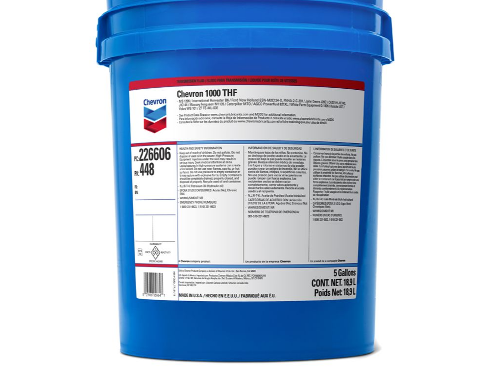 - Low operating costs — Chevron 1000 THF meets or exceeds fluid performance requirements of most OEM’s, maintaining efficiency and reliability while minimizing overall operating costs.